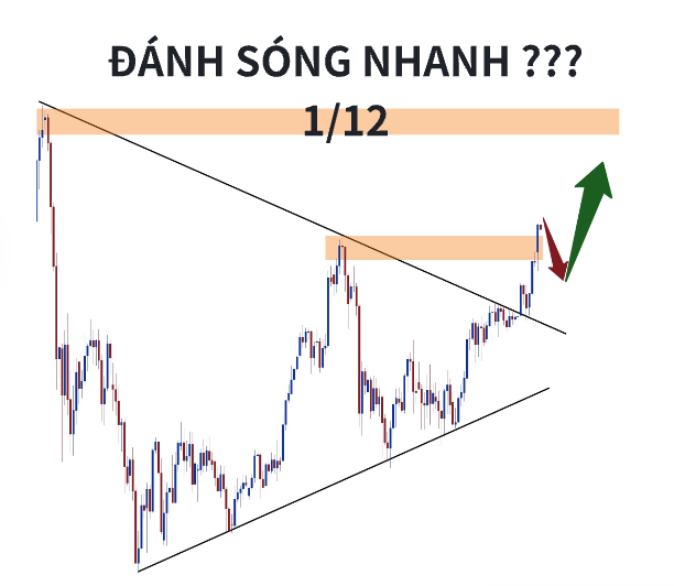 Diễn biến 48 giờ gần nhất cho thấy vàng có khả năng quay lại đỉnh cũ – thậm chí vượt nhẹ nếu lực thị trường đủ mạnh. Đây được xem là một nhịp sóng nhanh, kéo dài khoảng 10 ngày.