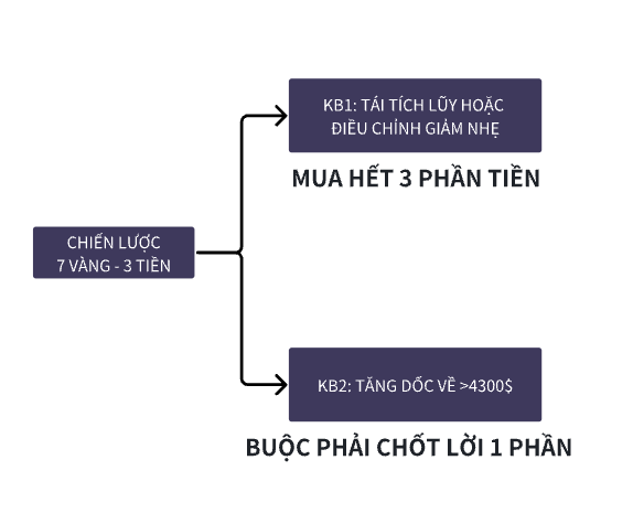 Vàng tái tích lũy quanh vùng 4.000 USD/oz trong 1–3 ngày → Có thể mua bổ sung, kích hoạt full 3 phần tiền còn lại.