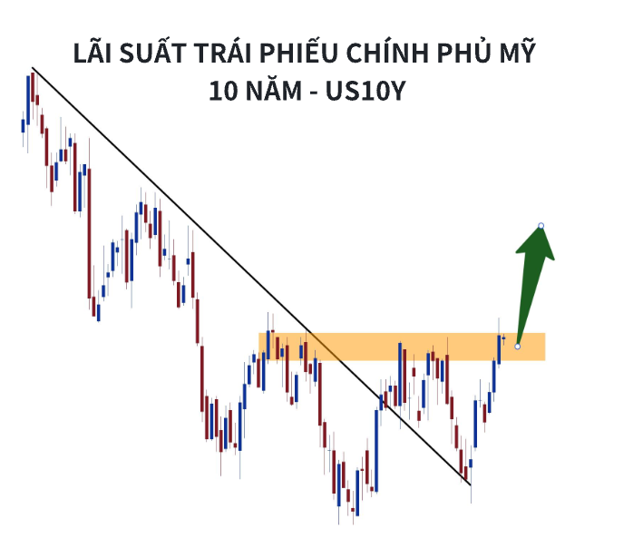 US10Y tăng mạnh – tín hiệu không đẹp cho vàng.