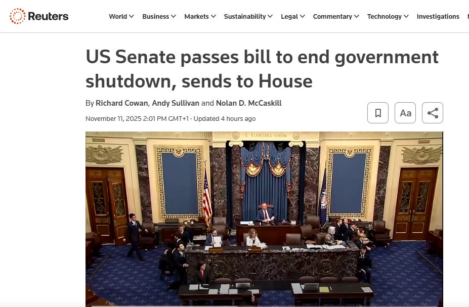 - Trong khi Thượng viện Mỹ đã thông qua dự thảo ngân sách mở cửa lại chính phủ.