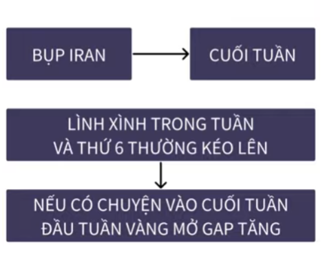 Nhưng nếu leo thang, đáp trả qua lại, mở rộng xung đột → kỳ vọng còn → vàng tiếp tục đi lên