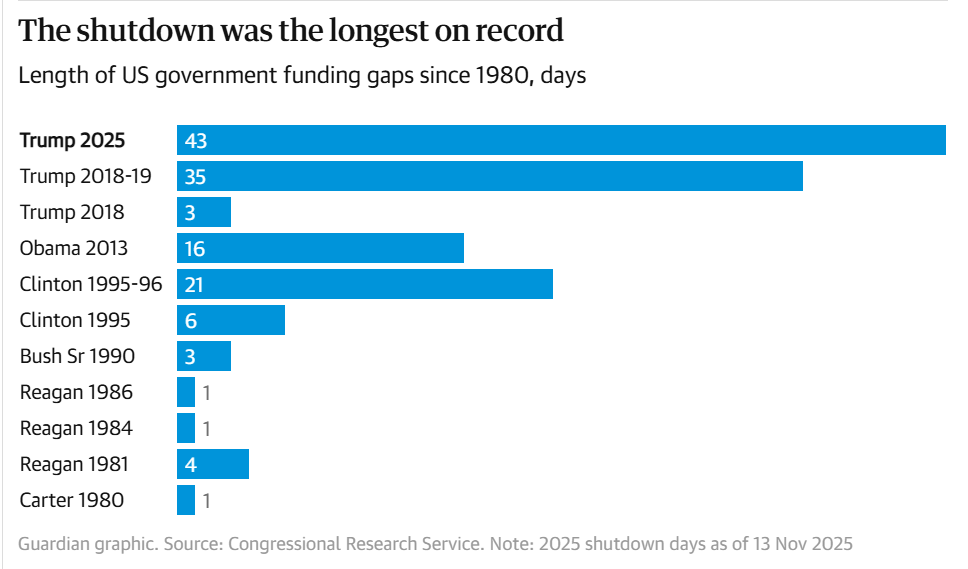 Trump ký ban hành, chấm dứt 43 ngày đóng cửa – một trong những đợt kéo dài nhất trong lịch sử.