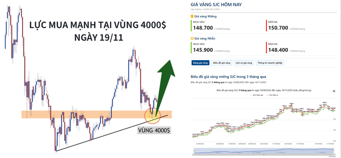 Ngày hôm qua vàng đã test đúng vùng 4000 và bật lên mạnh ngay lập tức.