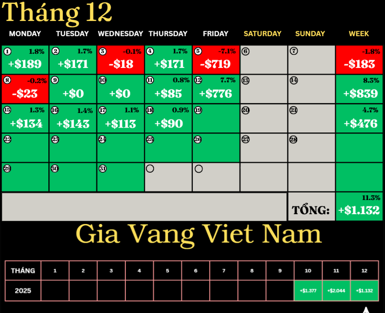 Phần tiền còn lại chưa giải ngân, chỉ mua gia tăng khi vàng vượt đỉnh cũ rõ ràng.