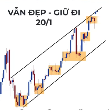 Giá vàng hiện tại vẫn đang giữ rất tốt trong vùng tích lũy cao. Với góc nhìn của Kỳ, chỉ cần giữ được mặt bằng giá này thôi đã là một tín hiệu rất mạnh rồi.