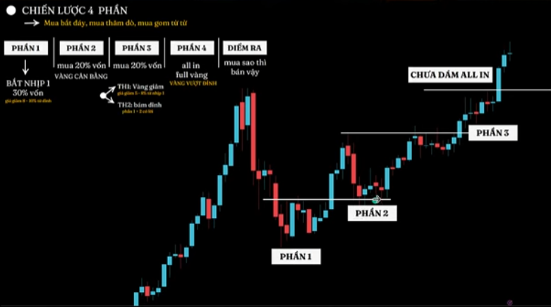 Phần 2: Mua thêm khi giá cân bằng, tạo đáy rõ ràng → Hai phần này chiếm 50% vốn