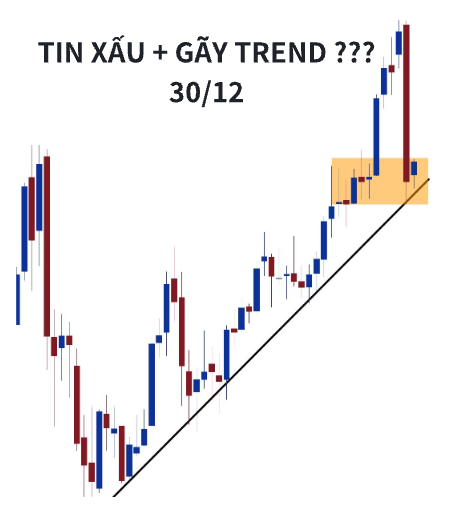 Vàng vừa có một cú giảm khoảng 5% chỉ trong một phiên. Nếu kịch bản này xảy ra ở đầu tháng hoặc đầu năm, chiến lược hợp lý sẽ là hạ tỷ trọng. Tuy nhiên, nó lại xuất hiện đúng ngày 29/12, thời điểm thị trường gần như cạn thanh khoản.